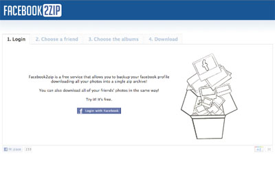 FaceBook2Zip è un pratico servizio online gratuito che consente di effettuare il download di tutte le foto presenti su un profilo FaceBook di tutti i tuoi amici in un pratico e comodo archivio zip. In poche parole, questo utilissimo servizio internet, scarica le foto da Facebook facendo un backup, cioè una copia, delle stesse foto che ci sono nei profili dei tuoi amici del popolare social network.