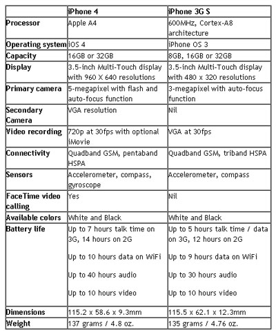 Nell’immagine a destra è possibile vedere bene le caratteristiche tra iPhone 4 e tra iPhone 3GS.