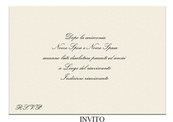 E tradizionalmente si usa scrivere in centro al biglietto “Dopo la cerimonia Nome sposo e Nome sposa sono lieti di salutare parenti ed amici a Luogo del ricevimento”, specificando l‘Indirizzo del ricevimento.