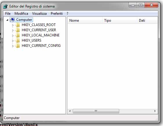 2. Ora dovete navigare tra le chiavi; i programmi che partono automaticamente all’avvio di windows, si trovano nelle seguenti posizioni: