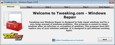 Come al solito in questi casi, andare sul sito del programma raggiungibile al seguente indirizzo www.tweaking.com/content/page/windows_repair_all_in_one.html, ed incominciare il download.